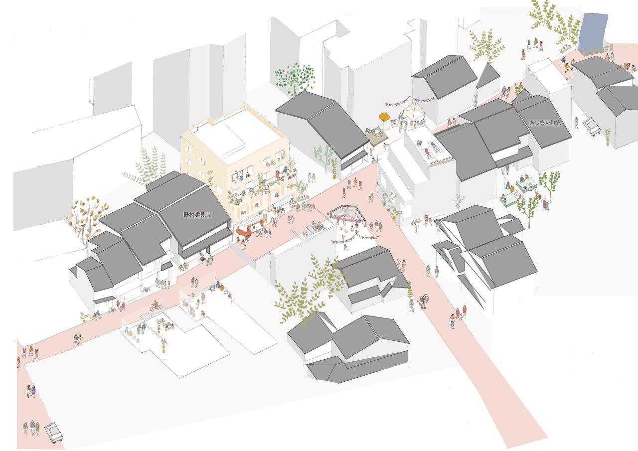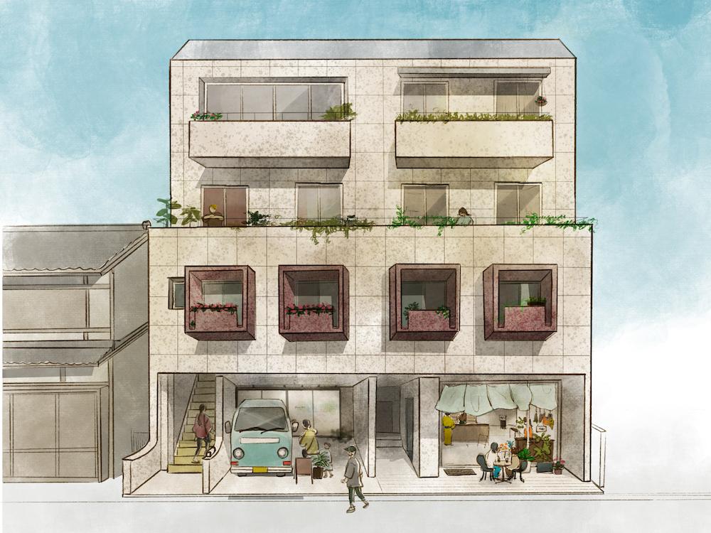マチとマチを繋ぐ通りにある70年代を象徴するファサードが印象的な中古ビルを複合施設へとリノベーション。